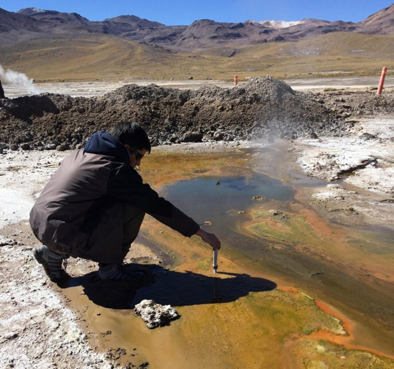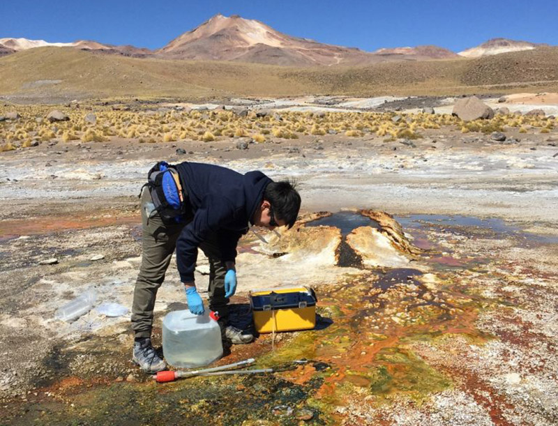 A group of researchers from Chile is studying at more than 4,200 meters above sea level different viruses in the water of the geysers of the El Tatio geothermal field, in the Andes Mountains, in the middle of the Atacama Desert.