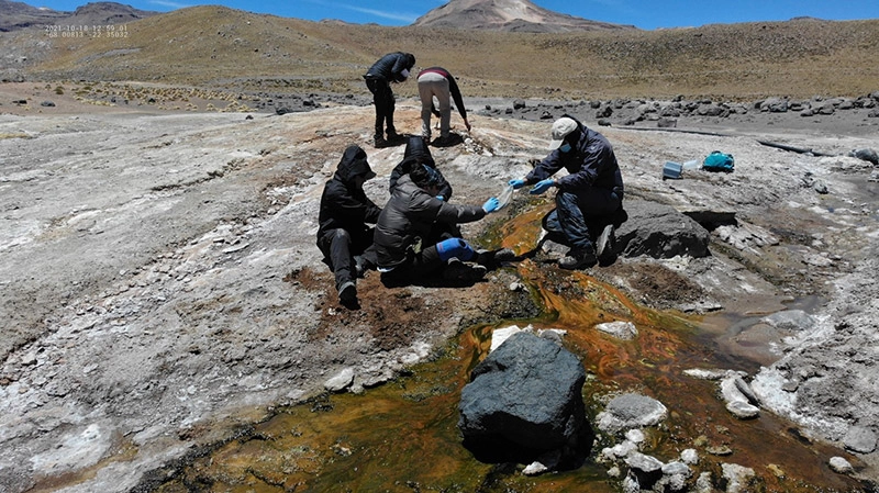 At 4,200 meters above sea level and during 9 days, a group of researchers focused on taking samples in 13 geysers of the El Tatio geothermal field, in the Atacama Desert.